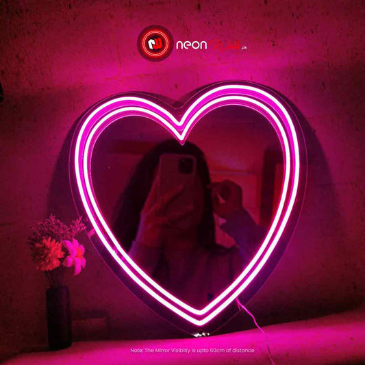 Dual Line Heart Selfie Neon Mirror (Big)