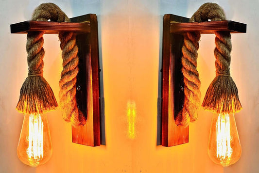Vintage Rope Wall Lamp - Hanging Wooden Bulb Lamp