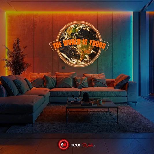 The World is Yours - UV LED Neon Sign - Motivational Wall Decor