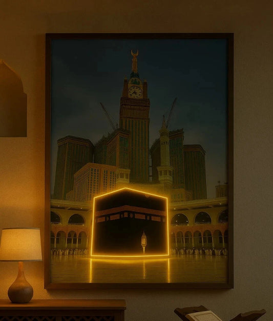 Kaaba LED Neon Frame Poster – Islamic Wall Art for Home & Prayer Spaces