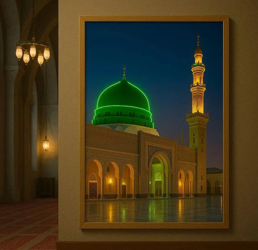 Masjid Al Nabawi LED Neon Frame Poster – Islamic Wall Art for Home & Prayer Spaces