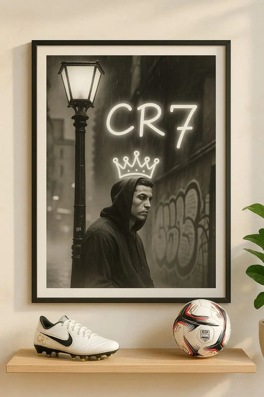 King Ronaldo CR7 Crown LED Neon Frame Poster – Football Wall Art for Fans