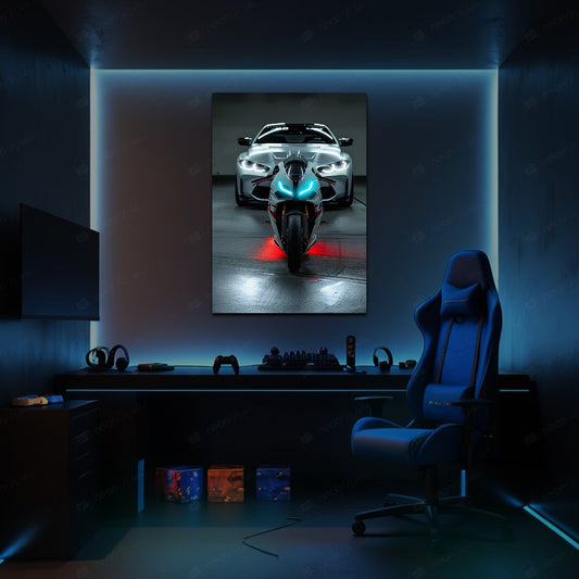 BMW Car and Bike | LED Neon Frame Poster (Large)