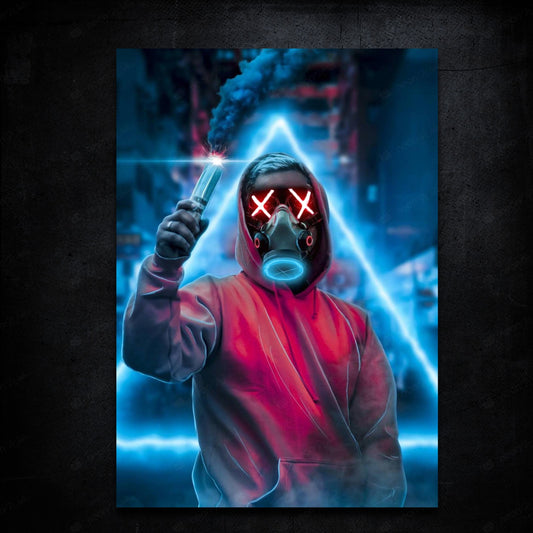 Mask Smoke Bomb | LED Neon Frame Poster (Large)